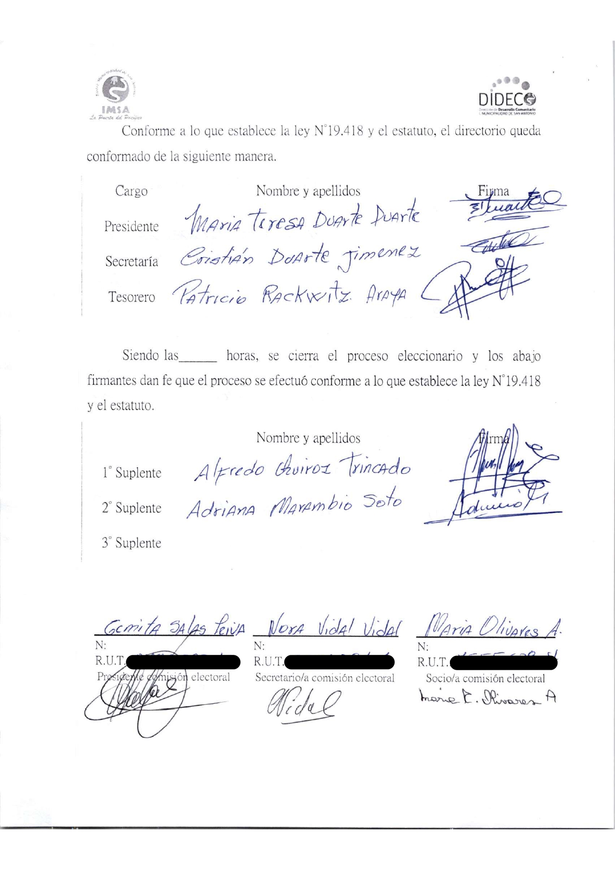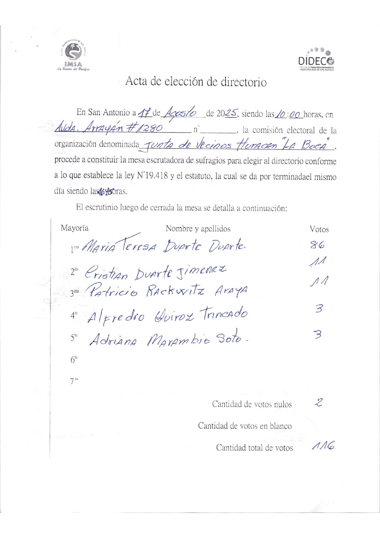 Acta de elecciones JJVV HURACAN LA BOCA