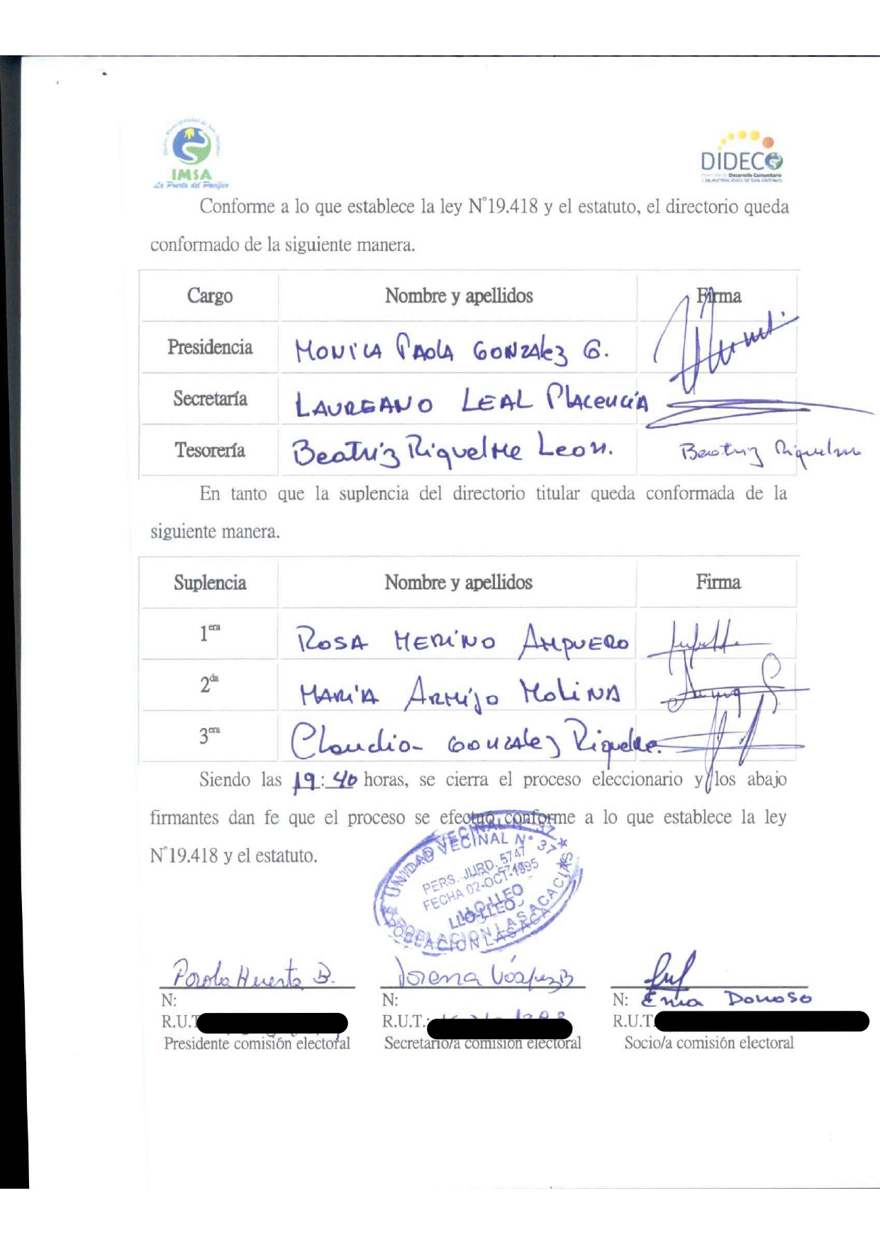 Acta de elecciones COMITE HABITACIONAL ALTO SAN ANTONIO