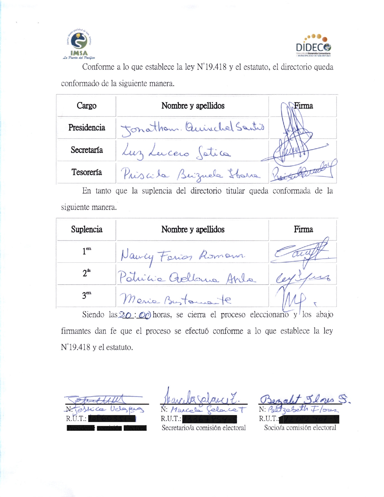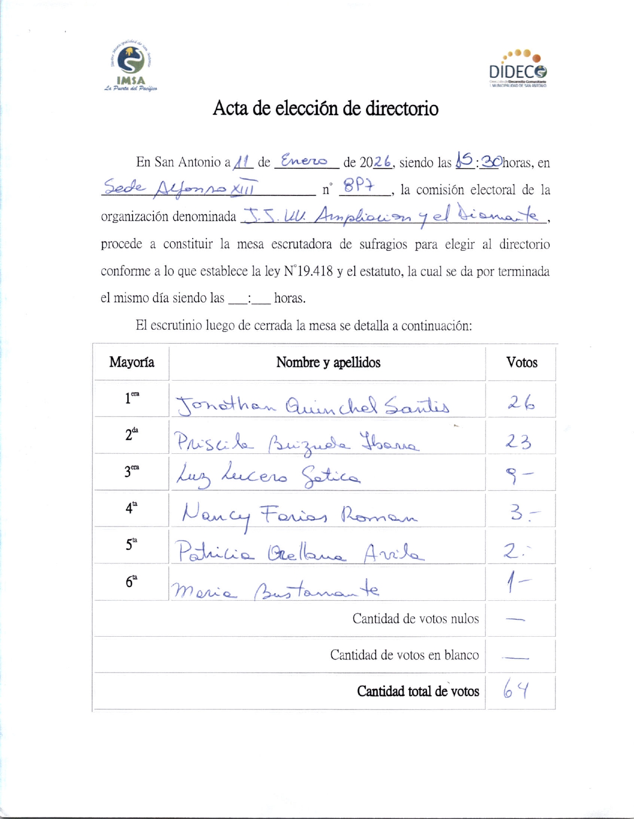 Acta de elecciones AMPLIACION Y EL DIAMANTE