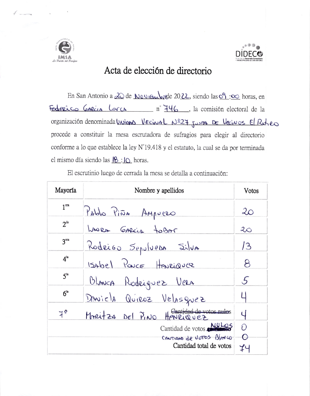 Acta de Elecciones "Comité Habitacional Villa Emiliana"